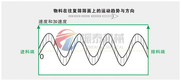 具體搖擺直線篩作業(yè)時物料的運動軌跡與滯留時間可以通過下圖及右圖來說明: